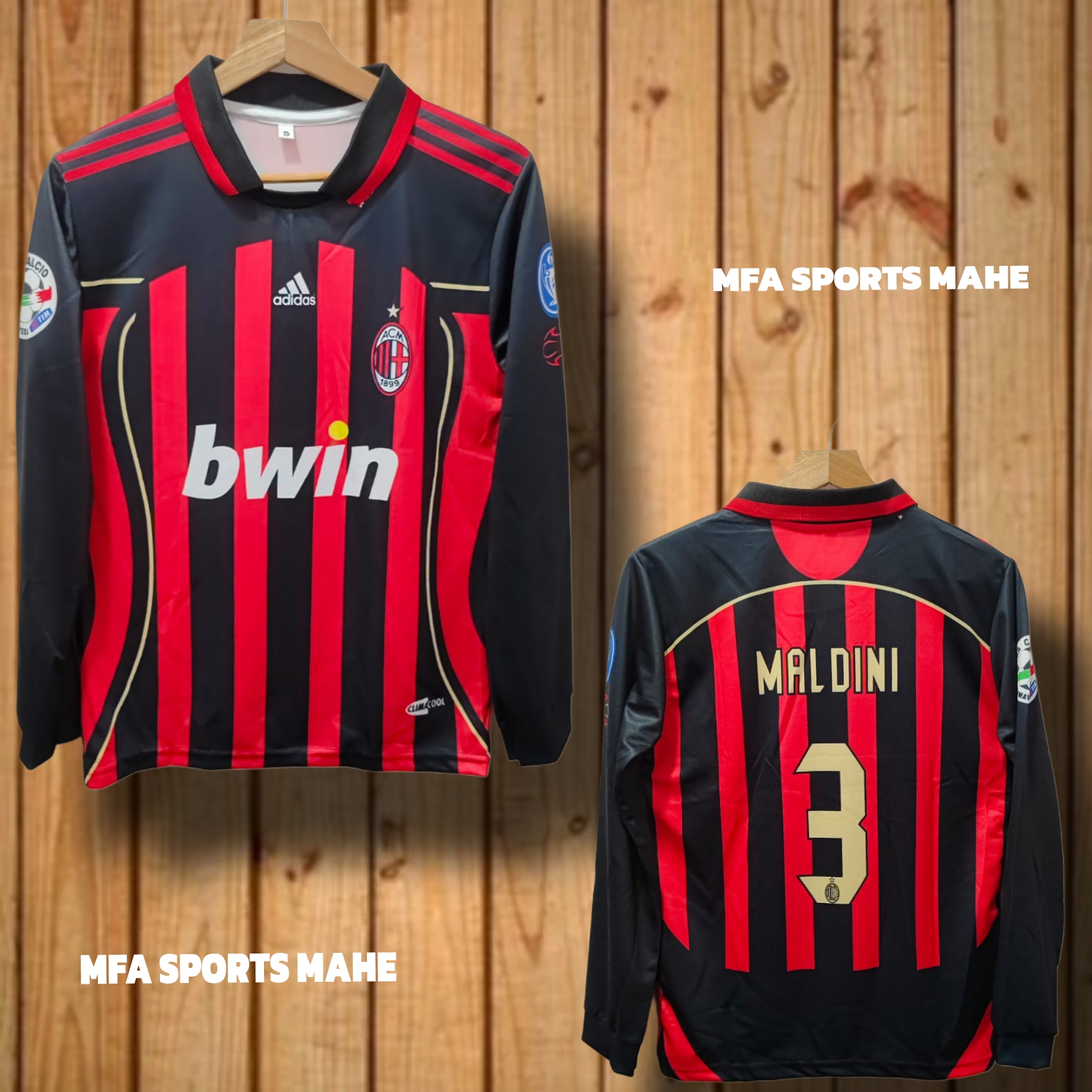 AC MILAN HOME 2006-07 MALDINI FULL SLEEVES COLLAR